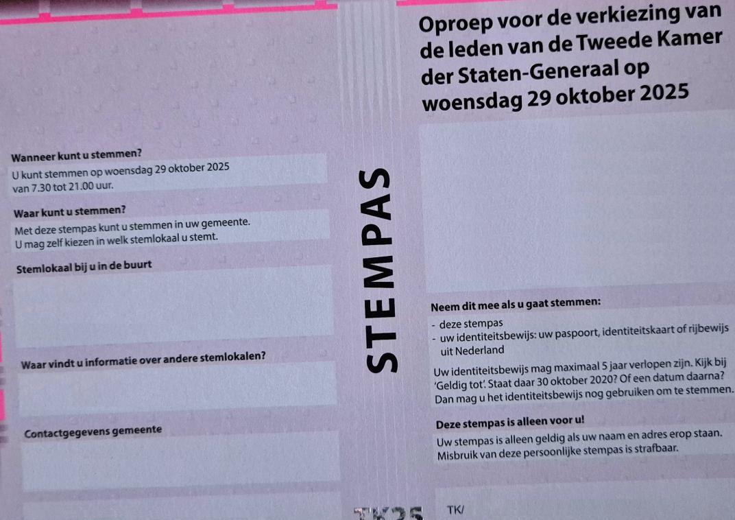 De stempassen zijn bezorgd 16 oktober 2025 Heeft u uw stempas niet ontvangen of bent u hem kwijtgeraakt? Vraagt u dan een vervangende stempas aan.
