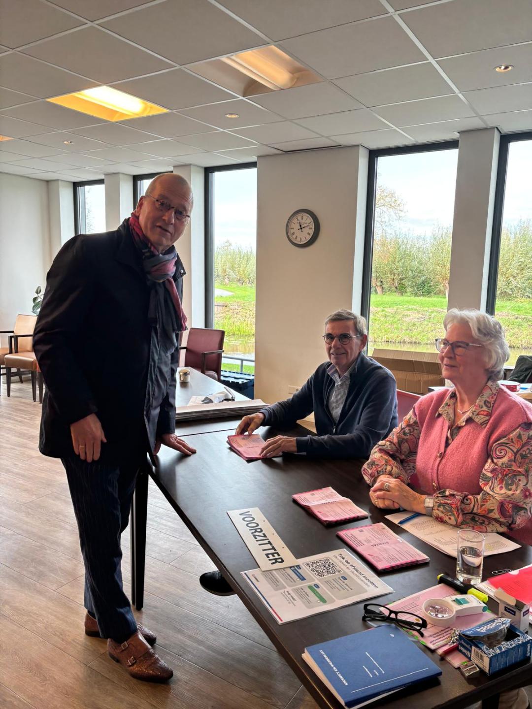 Burgemeester Theo Segers bezoekt vandaag samen met Marko Does en Arie Koppelaar alle stembureaus. Daar helpen veel vrijwilligers, naast team Burgerzaken, om de verkiezingen in gemeente Molenlanden goed te laten verlopen.